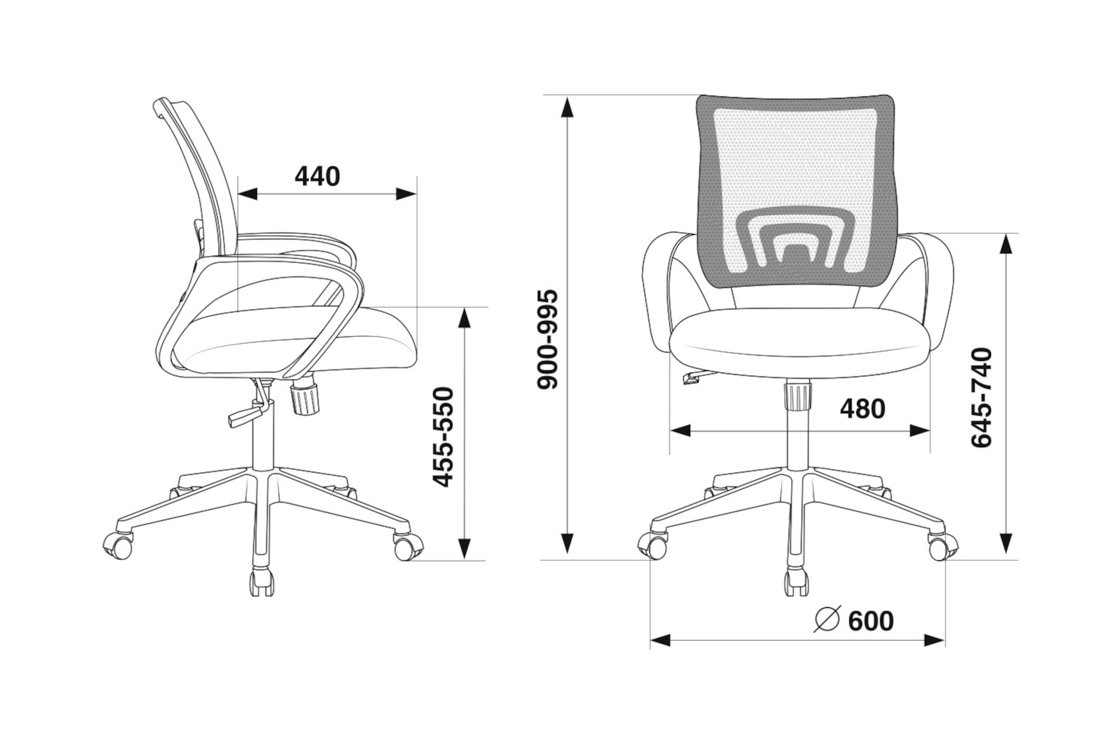Диаметр колес - 5 см. Высота сиденья - 55 см. Высота с подлокотниками - 74 см. Ширина сиденья - 48 см. Глубина сиденья - 44 см. Спинка отдельная от сиденья. Крестовина пластиковая. Механизм качания с регулировкой под вес и возможностью фиксации в вертикальном положении.